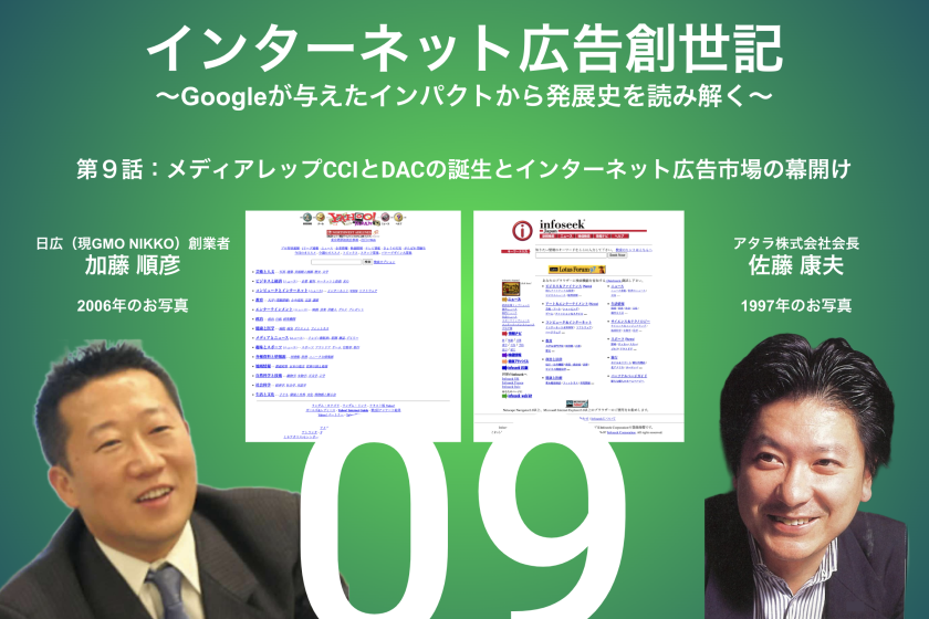 株式会社インプレスが運営するウェブマガジン「Web担当者Forum」にて、「インターネット広告創世記 ~Googleが与えたインパクトから発展史を読み解く〜」シリーズの第9話「メディアレップ「CCI」「DAC」の誕生とインターネット広告市場の幕開け」が公開されました。「杓谷技研ジャーナル」でも記事を公開していますので、ぜひ今後とも連載にお付き合いいただけますと幸いです。